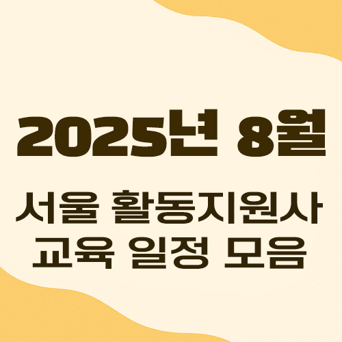 서울에 위치한 활동지원사 양성 교육기관의 2025년 8월 교육 일정 모음이다. 모임 일정은 교육기관 사정에 따라 변경될 수 있다.