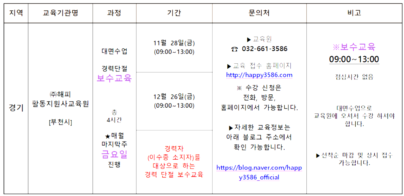 | 2025년 12월 서울 장애인활동지원사 양성 교육 일정 모음 (0) | 2025.11.26 |