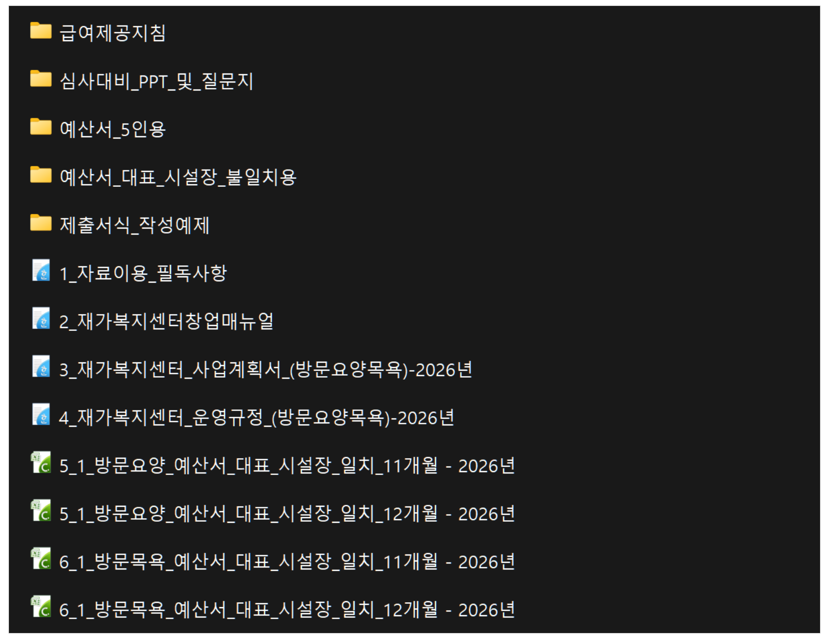 아래는 2025년 12월 또는 2026년 1월에 제출가능한 재가복지센터 지정 심사 샘플 서류이다.