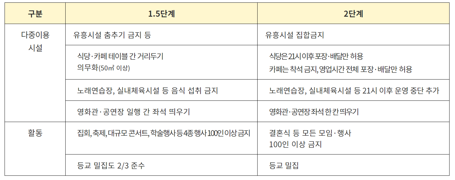 그러나 정부는 사회적 거리두기를 다음 단계로 올리는 대신 2단계는 그대로 유지하고