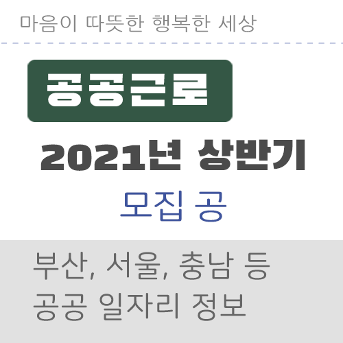 2021년 상반기 공공근로 일자리 모집 공고 ( 부산, 서울, 충남 )