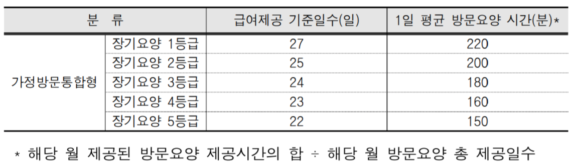  방문요양 월 4회 및 방문간호 월 4회 이상 필수 제공