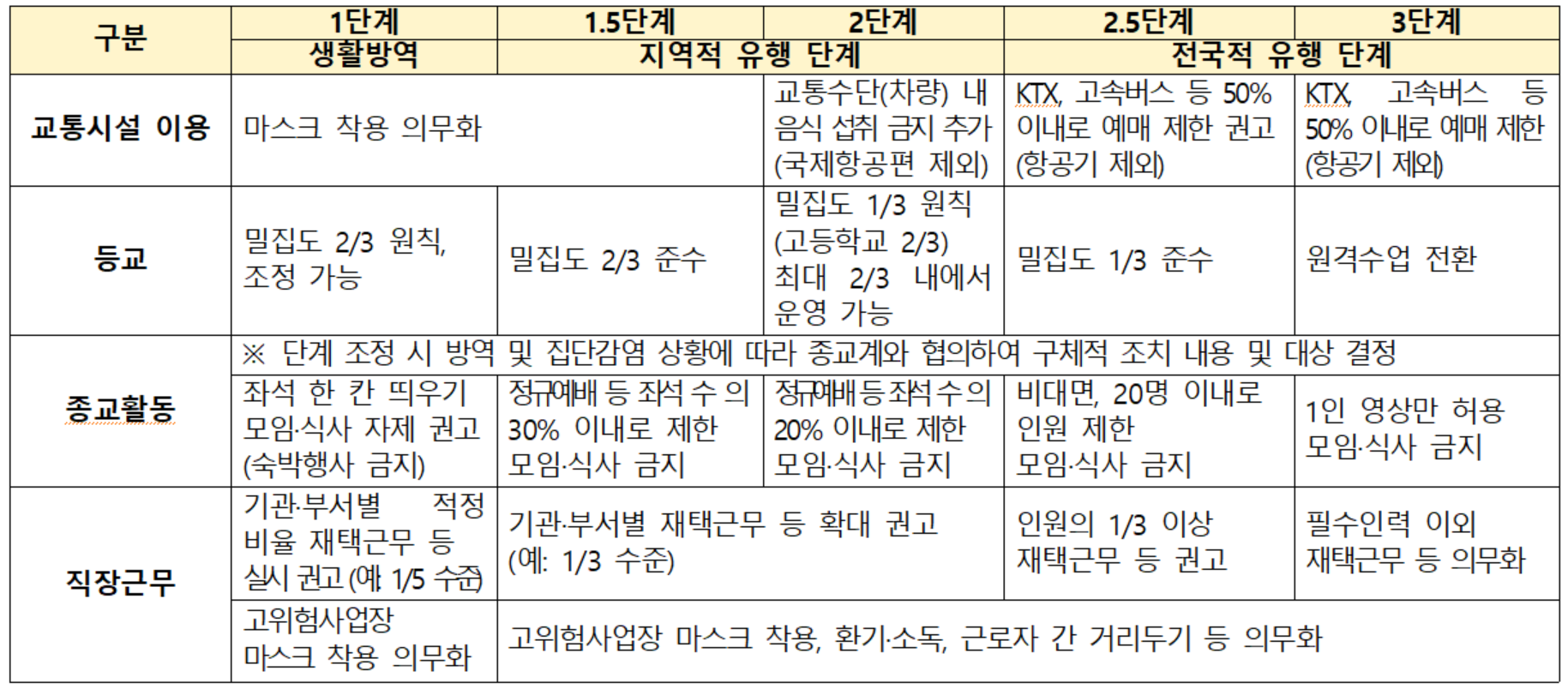 이 자료는 가장 최근의 사회적 1단계, 1.5단계, 2단계, 2.5단계, 3단계 거리두기 지침이다.