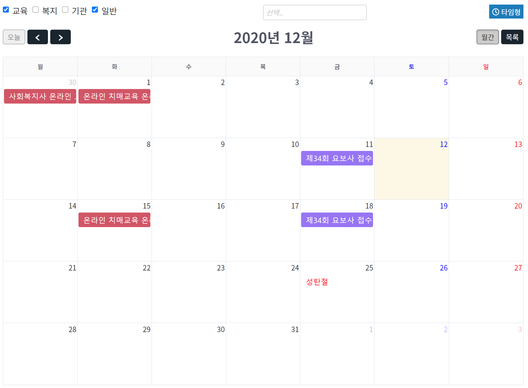 복지 캘린더는 달력형과 타임라인형 두가지 유형을 제공하고 있다.