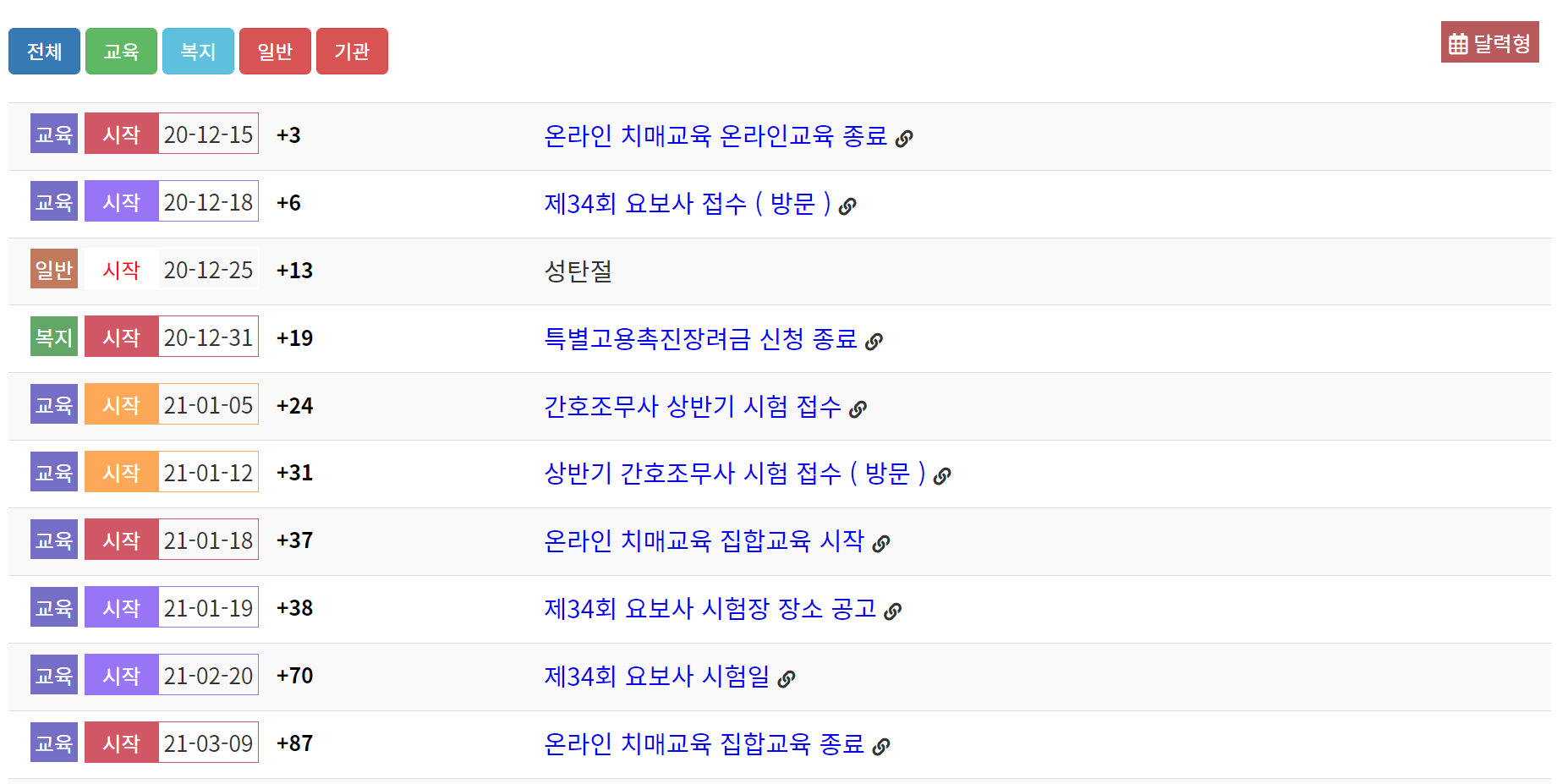 복지캘린더 - 자격증, 장기요양 및 복지 일정표