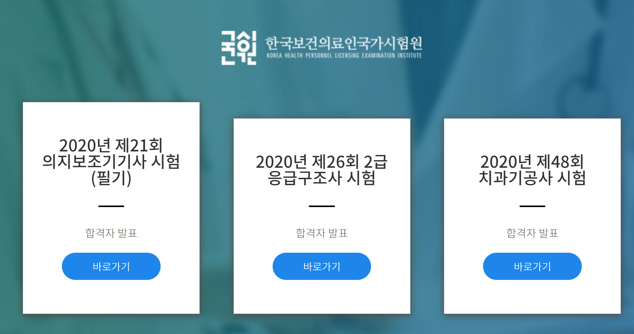합격자 여부는 응시 원서에 기재된 연락처로 문자메시지로 알려주고 국시원 홈페이지 (www.kuksiwon.or.kr) 의 합격자 확인 임시 페이지에서 가능하다.