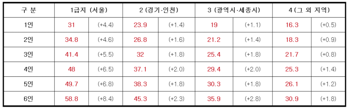 ■ 1인 서울 주거 급여는 266,000원에서 31만원으로 증가했다.