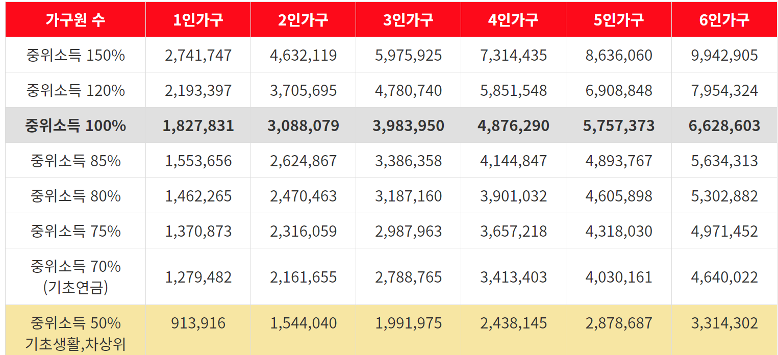 (재산) 대도시 1억8800만 원, 중소도시 1억1800만 원, 농어촌 1억100만 원 이하