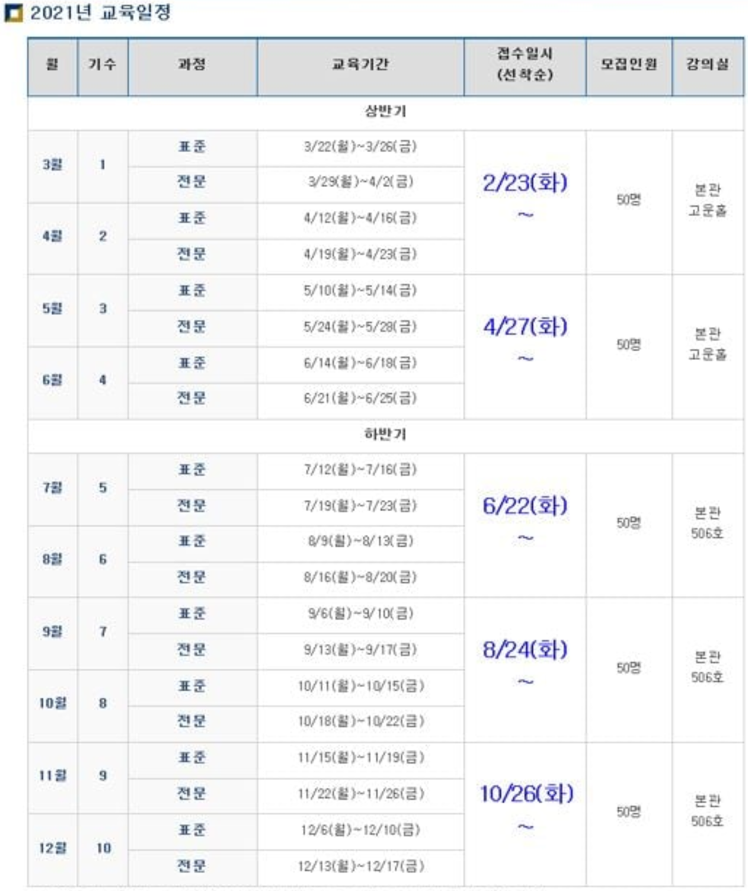 ※ 교육 일정은 교육원 사정에 따라 변경될 수 있습니다.