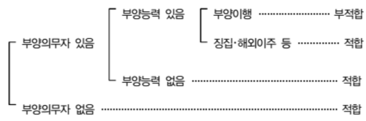 부양의무자의 유무를 보고, 있으면 부양능력을 보며, 부양의무자의 불능, 거부, 기피 사유도 본다.