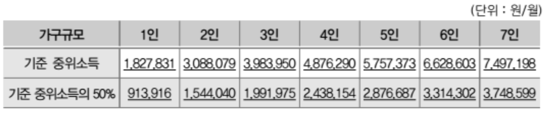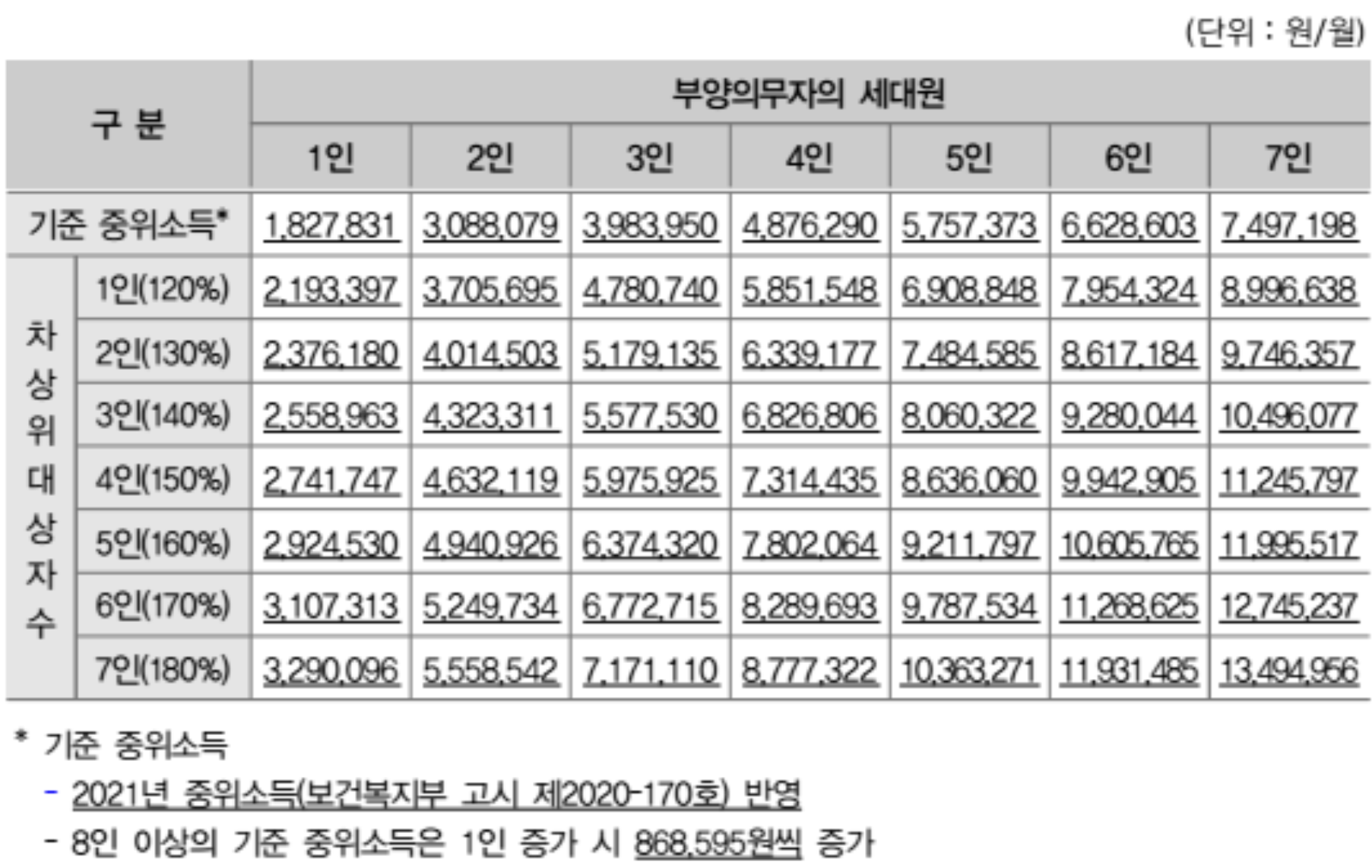 ※ 8인 이상의 기준 중위소득은 1인 증가 시 868.595원씩 증가