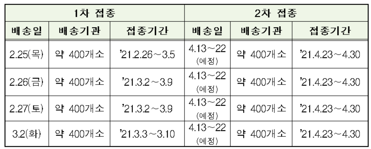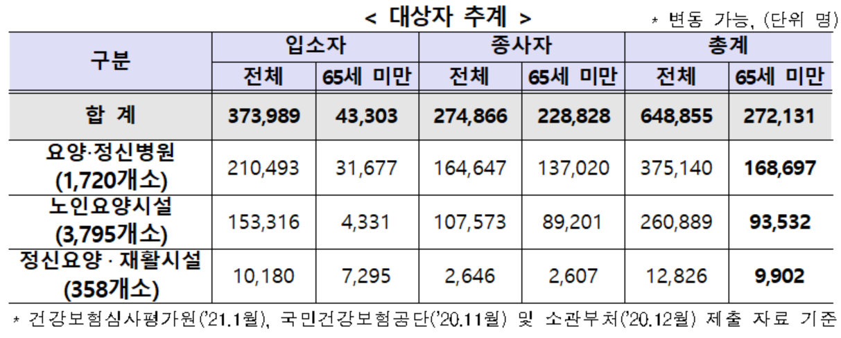 요양시설과 요양시설에 대한 접종 시기도 발표되었다.