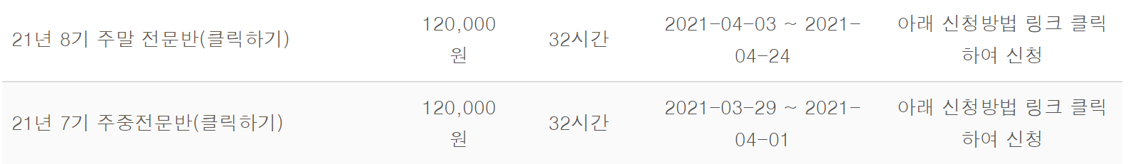 3월 8차까지 진행되는 것으로 보아서 매월 교육 일정이 있는 것 같다. 홈페이지 방문해서 접수 일정을 확인해 보자.