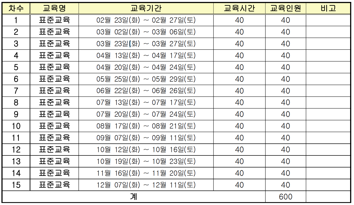 * 교육희망자 수요 증가 시 상황에 따라 추가 교육 실시함.