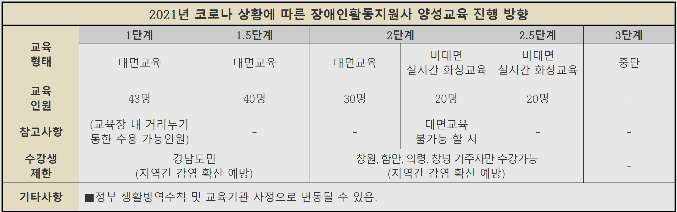 코로나19 상황에 따른 장애인활동지원사 양성 교육 진행 방향