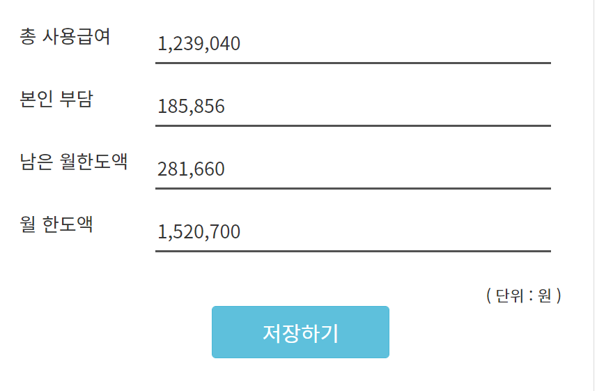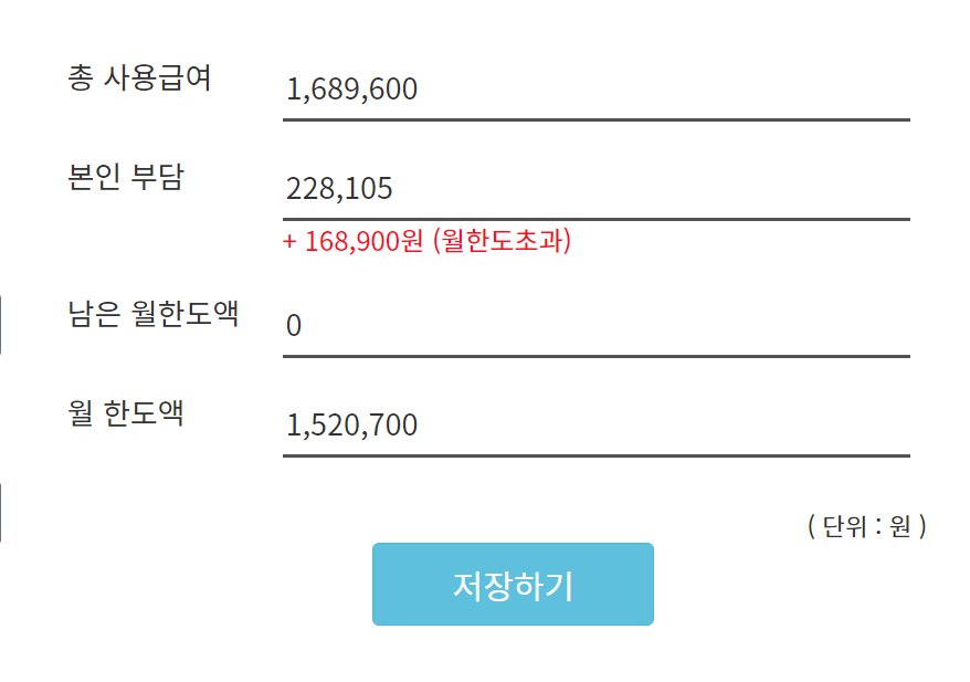 만약 월 한도액을 초과한 100% 본인 부담금에 대한 비용도 계산된다.