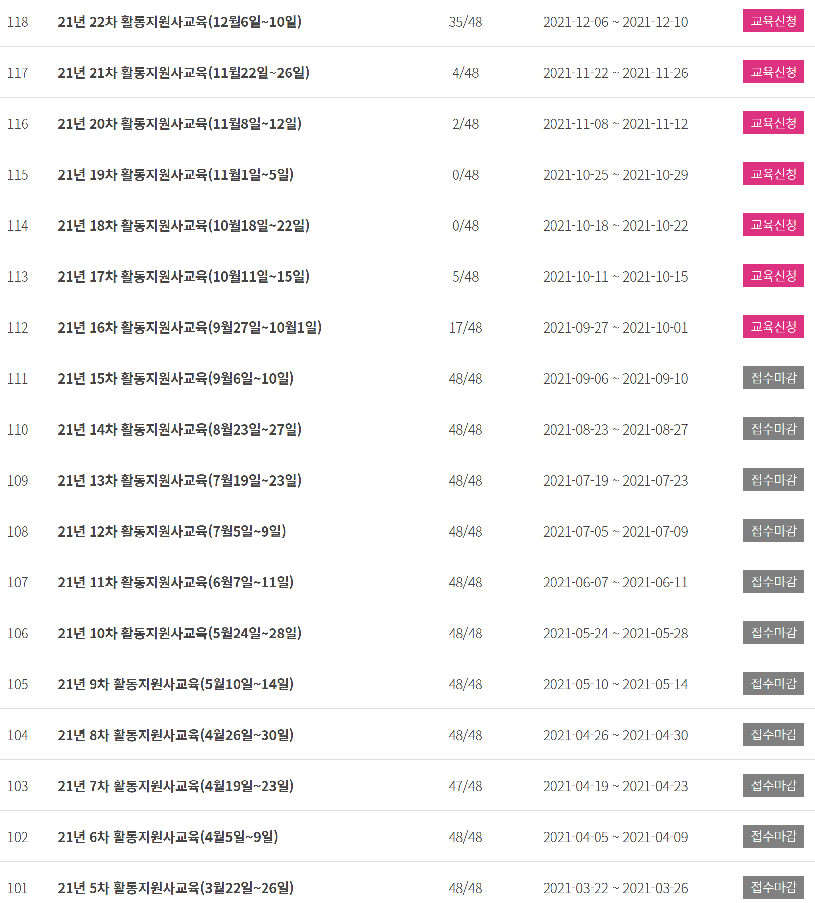 올해의 교육 접수 마감이 되고 있으니 서둘러 신청하는 것이 좋다.