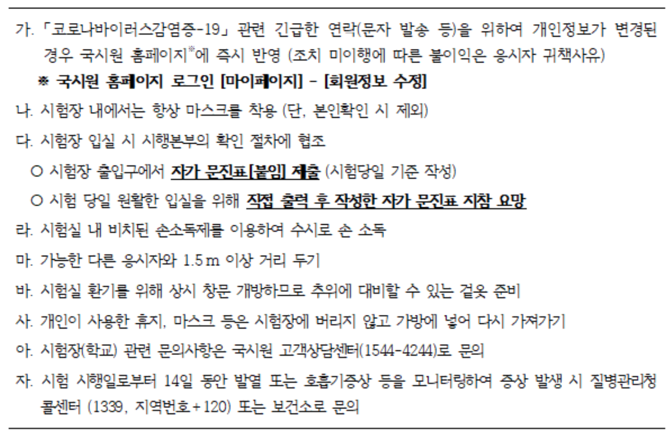 코로나바이러스감염증-19 관련 응시자 협조사항