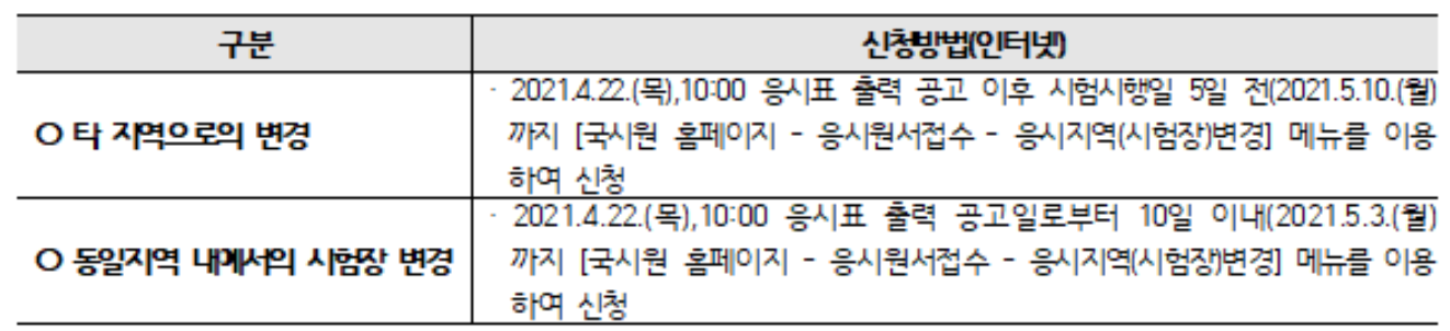 일부 지역의 경우에도 시험장 추가 및 변경으로 응시지역 확대될 수 있으며, 2021년 4월 22일(목) 공고를 확인해 봐야 한다.