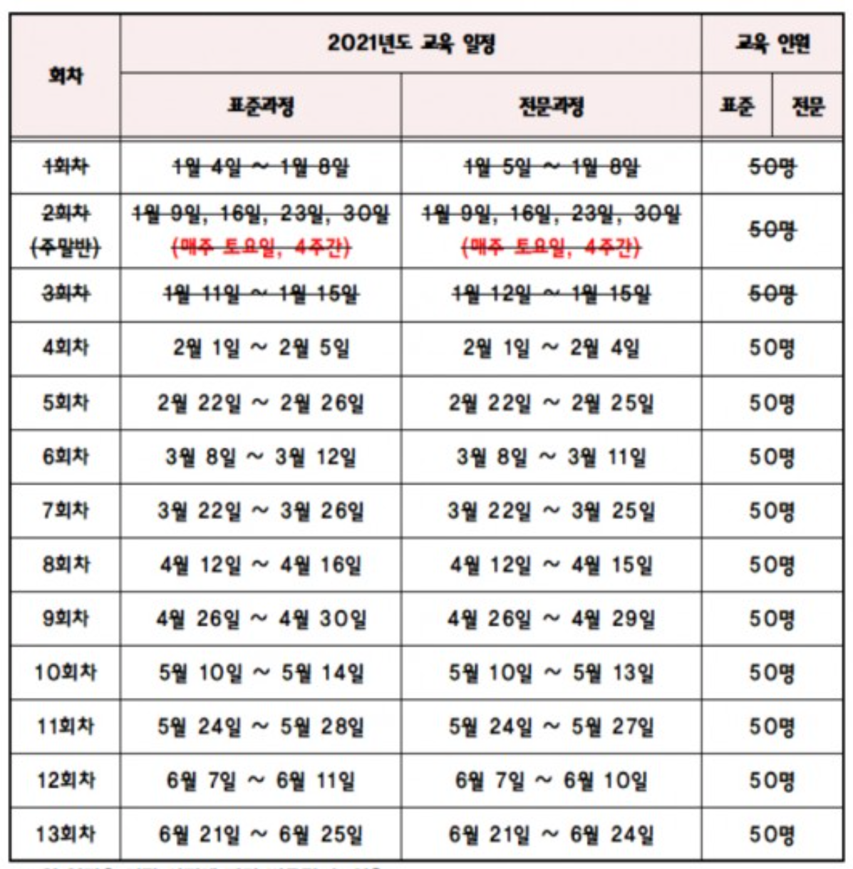 일정은 기관 사정에 따라 변동 될 수 있음.