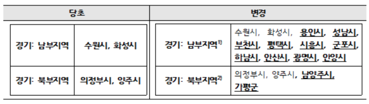 2) 경기 북부지역 시험장소에 남양주시, 가평군 추가