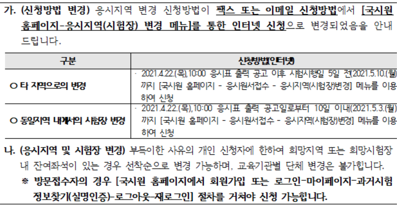 시험장 공고는 4월 15일 일부 변경된 사항을 발표했으나 4월 22일 일부 지역을 확대 추가되었다.