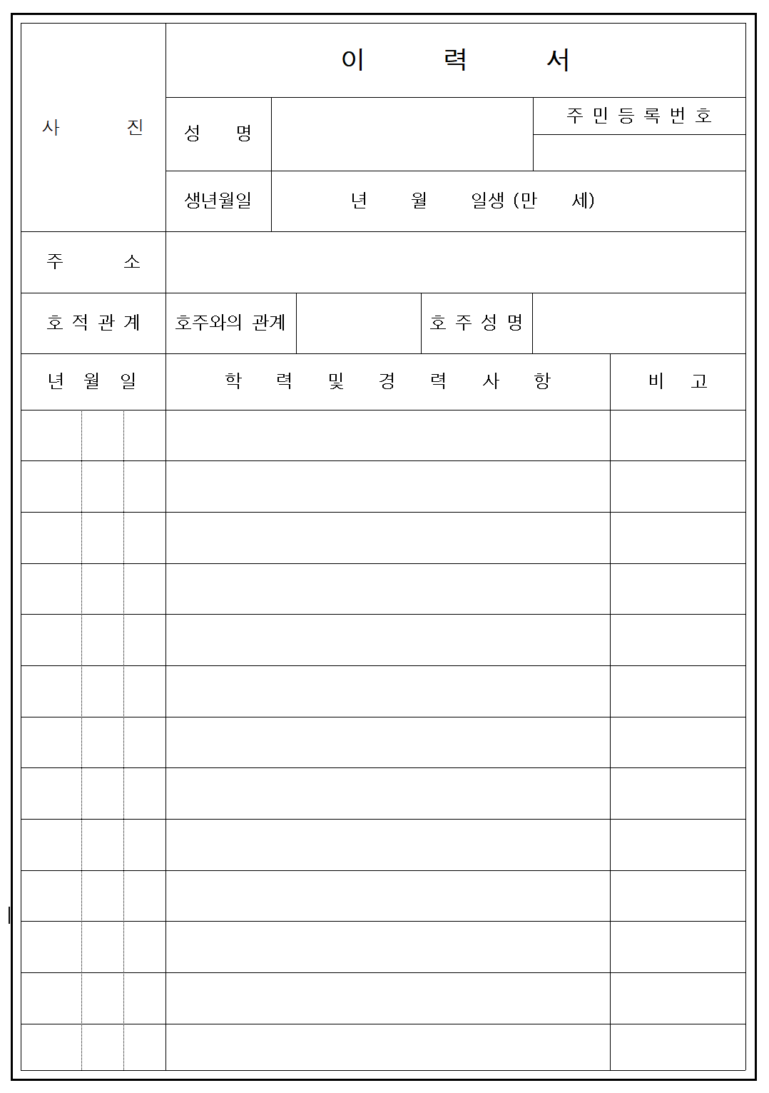 이력서 양식입니다.
