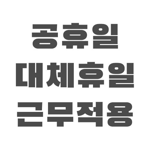 | 공휴일 | ▶국경일 중 3·1절, 광복절, 개천절, 한글날 ▶1월 1일 ▶설·추석 연휴 3일 ▶부처님오신날 ▶기독탄신일 ▶어린이날 ▶현충일 ▶공직선거법 상 선거일 ▶기타 수시 지정일(임시공휴일) |