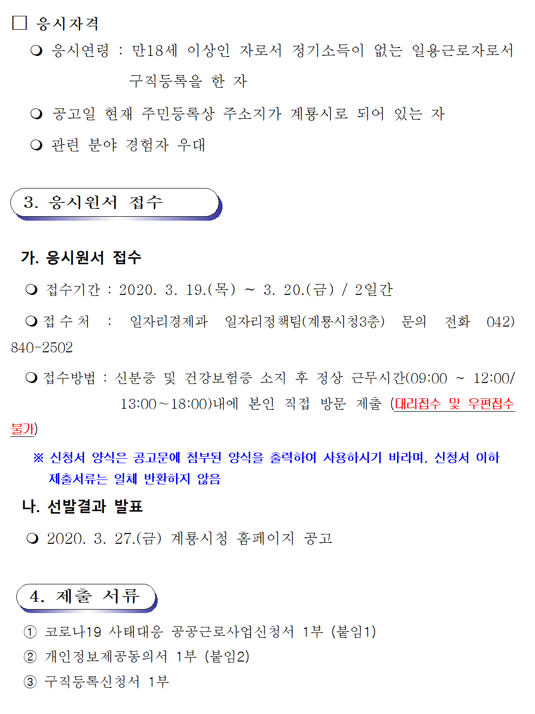 공공근로 신청 양식은 첨부파일을 다운로드 닫으십시오.