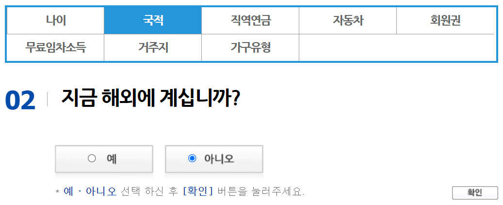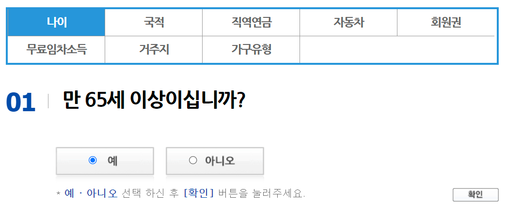 "제일 먼저 나이를 선택한다. 만 65세 이상이신 분은 언제든 기초연금을 신청할 수 있다."