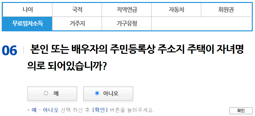 "본인 또는 배우자의 주민등록상 주소지 주택이 자녀명의이고, 시가표준액 6억원 이상인 경우, 연 0.78%의 소득이 적용된다.