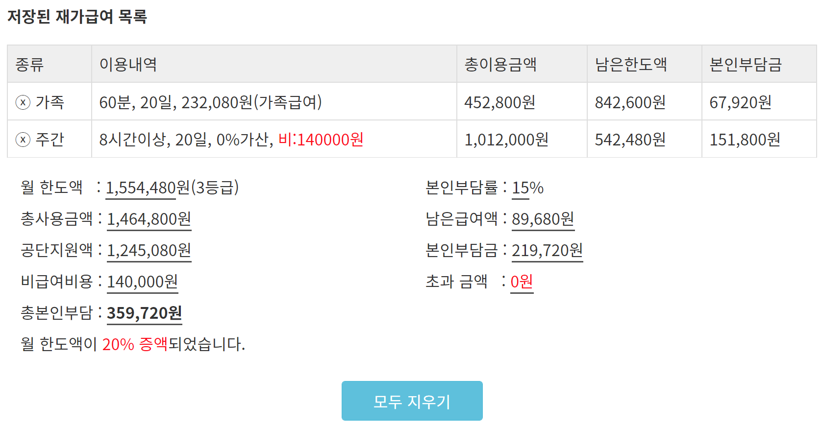 남은 한도액으로 다른 재가급여 사용에 대해서도 고려해야 한다면 복잡해진다.