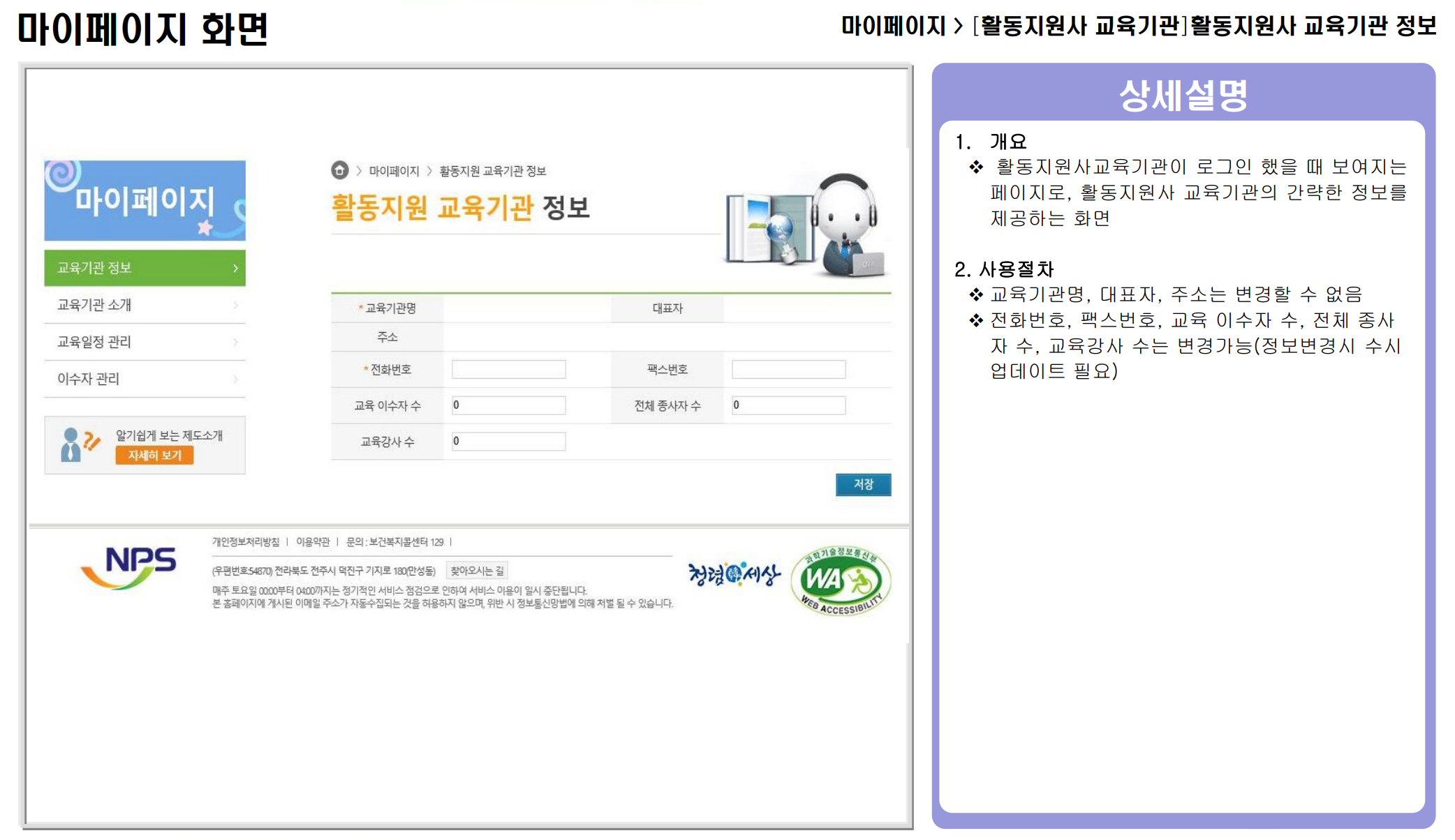 장애인활동지원사 교육기관용 장애인활동지원 홈페이지 이용안내 매뉴얼입니다.