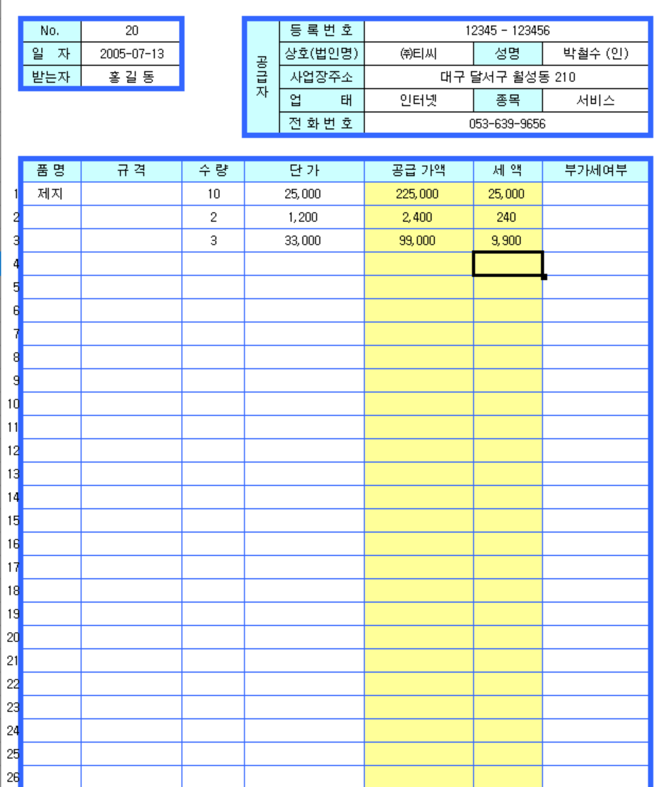 입력부분과 출력 부분이 나눠진 견적서입니다.