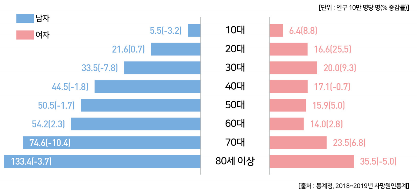 2021년 자살예방백서(2019년 통계 기준)에서 몇 가지 데이터를 발취해 보았다.