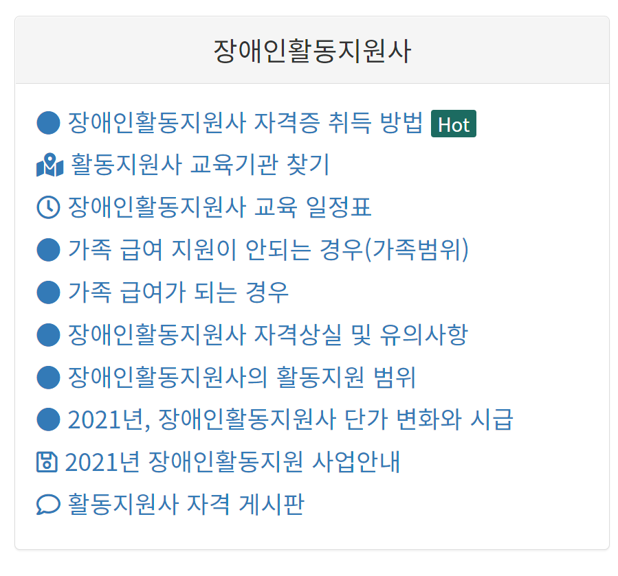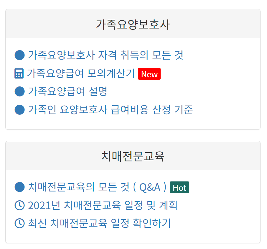 요양보호사, 장애인활동지원사, 사회복지사 등 자격증 취득, 치매전문교육 등 교육을 위한 정보 모음