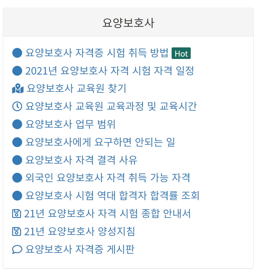 요양보호사 자격증 취득 방법, 교육 일정, 교육원 찾기, 자격과 결격 사유, 시험 안내서 문서 자료 등 자격증 취득을 위한 모든 내용을 한눈에 확인할 수 있다.