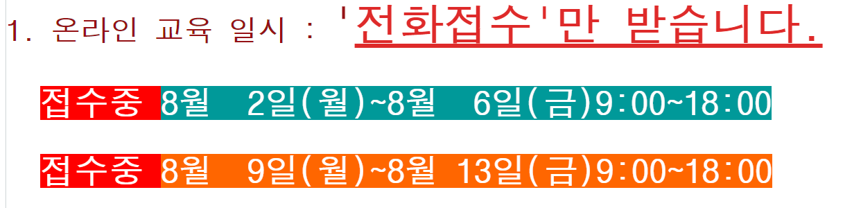 별도의 일정공고는 확인하지 못했지만 현재 8월 교육 접수 중이다.