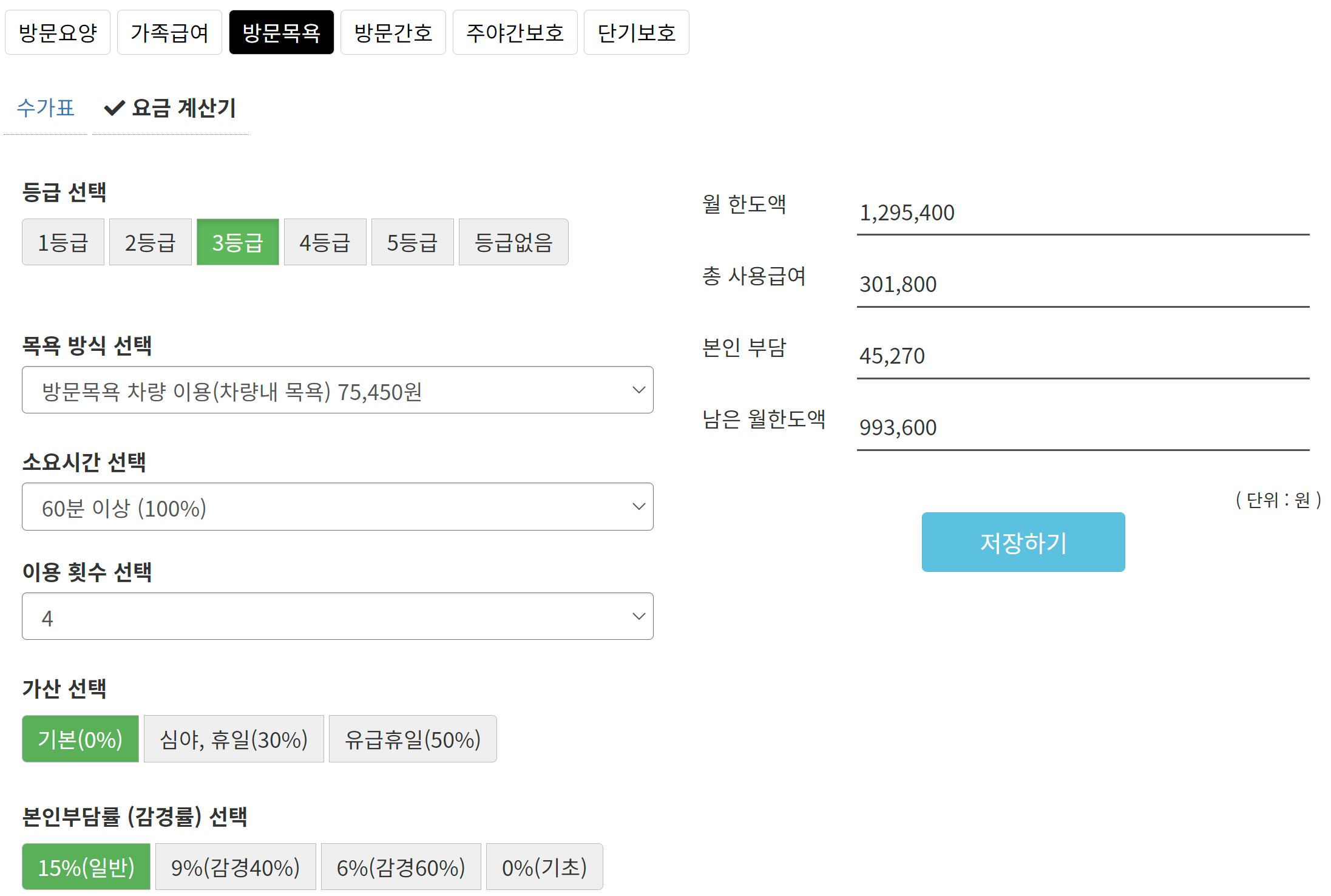 다음 기회에는 방문요양과 주야간보호센터 이용에 대한 모의계산을 해 보도록 하겠다.
