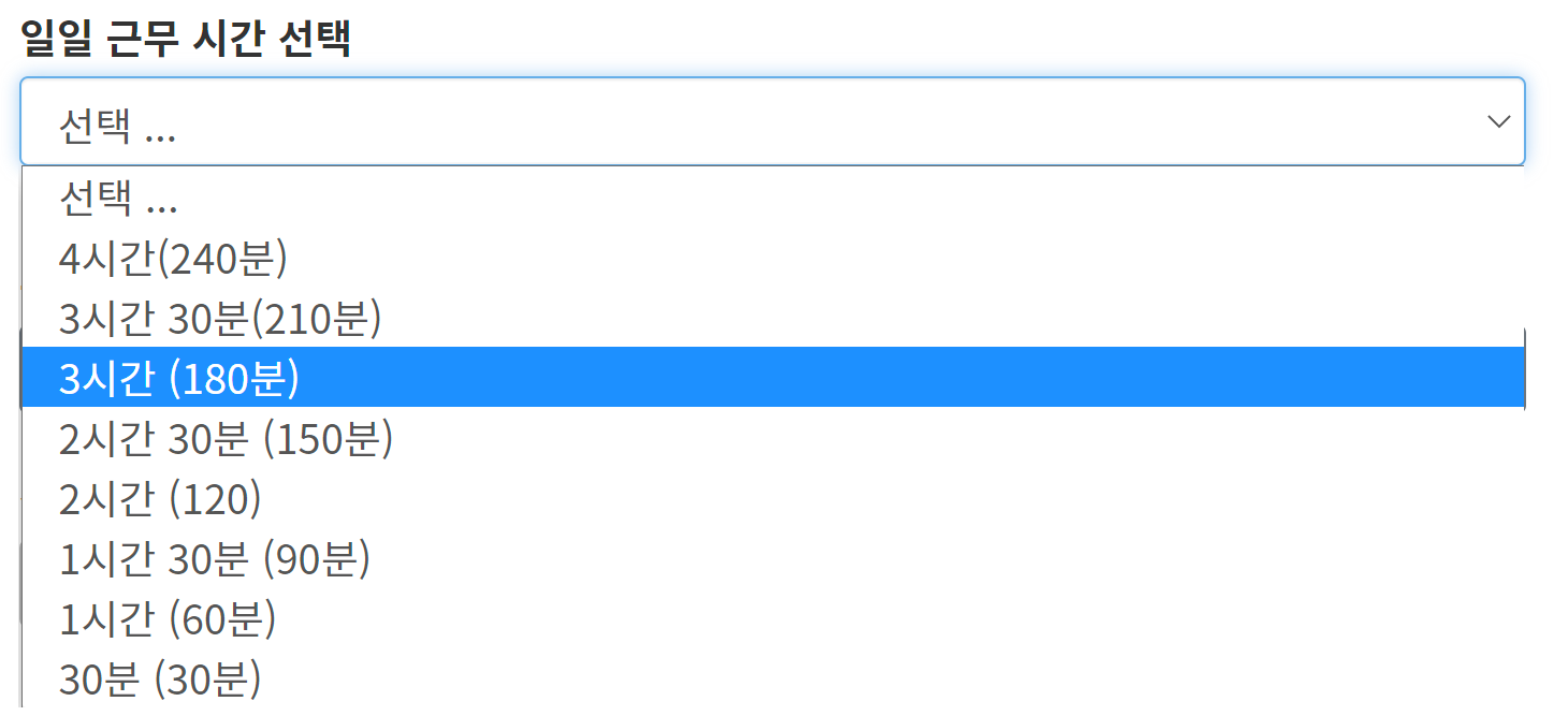 시급은 올해의 최저임금으로 기본 세팅되어 있다.