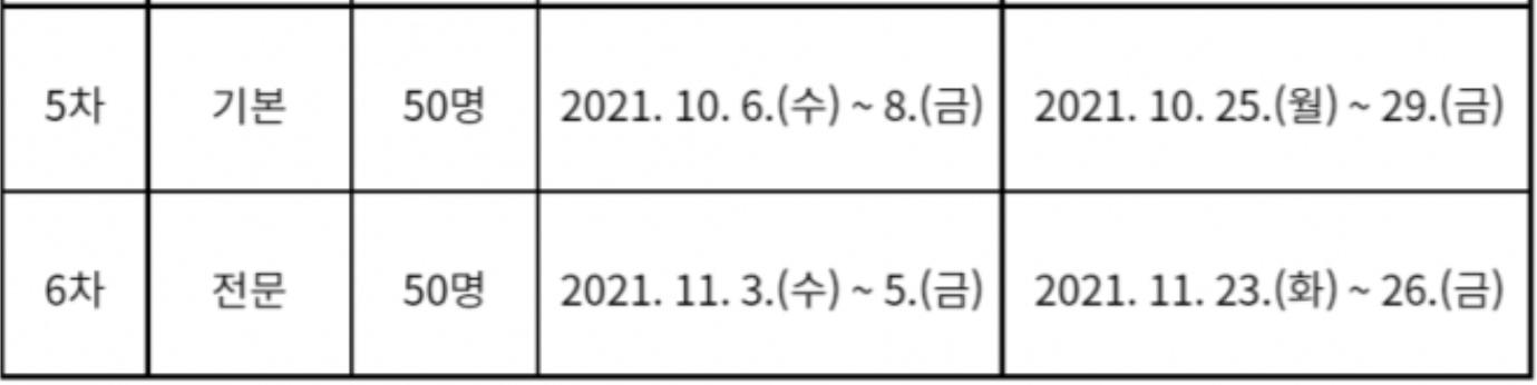 2021.10.18(월)~10.22(금) | 2021.10.8.(금) 09:00~모집 마감시 까지 |