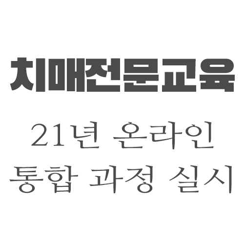 21년 이론, 실습, 시험을 모두 온라인으로 진행하는 치매전문교육 온라인 통합과정에 대한 신청과 시험 일정이 공고되었습니다.