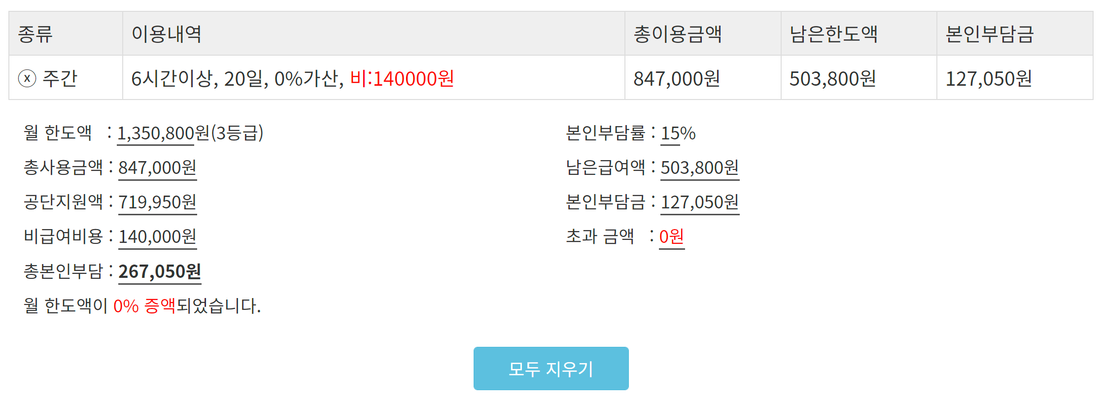 저장을 하면 다른 재가급여와 함께 연동해서 총 합계를 계산해 준다.