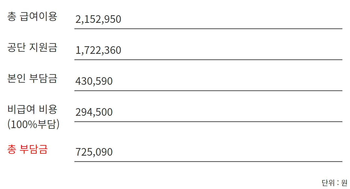 2022년 노인장기요양시설 요양원 입소 이용요금 모의계산, 비급여 계산 포함