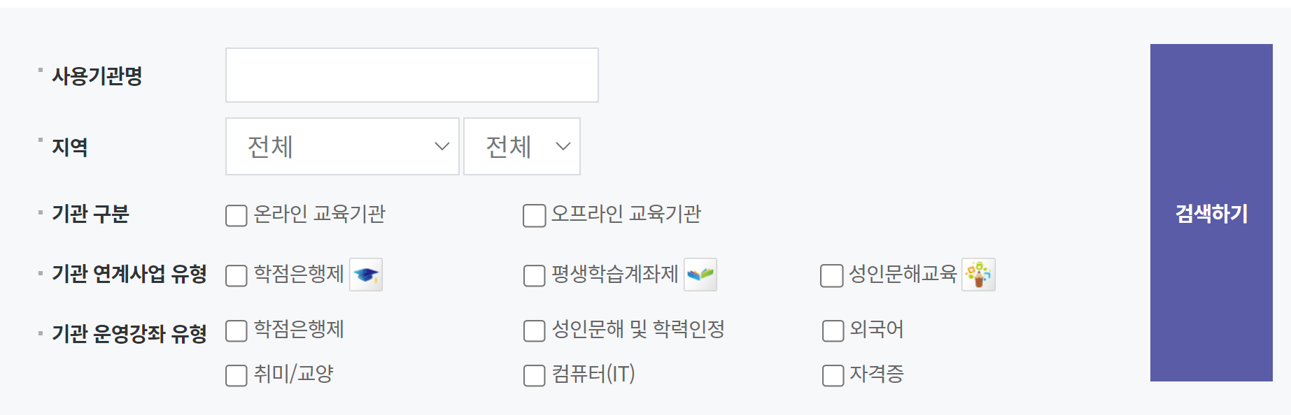사용처는 평생교육바우처 홈페이지 사용기관 안내 메뉴에서 검색해서 찾을 수 있다.