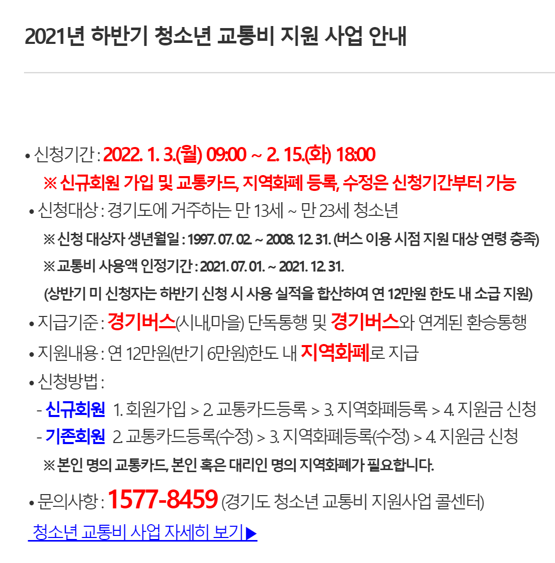 경기도 청소년 교통비 지원 포털 사이트에게 가입 및 신청이 가능하다.