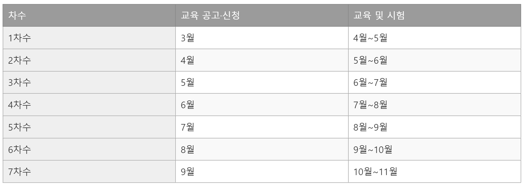 ○ 공고된, 온라인 시험 일자(시험 가능 시간대) 중 교육생별로 자유롭게 시험 응시 가능한 일자 및 시험시간에 학습사이트를 접속하여 시험 응시 가능합니다.