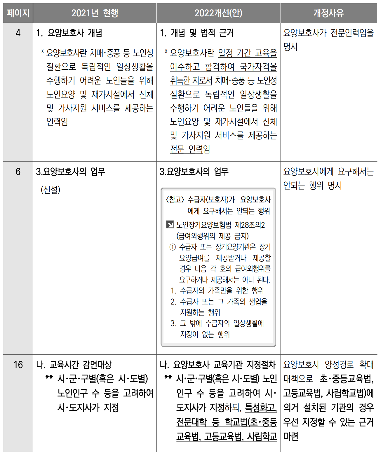 2022년 최신 요양보호사 자격 취득을 위한 양성 교육 지침이다. 요양보호사 교육원의 설립과 운영에 대한 정보 뿐 아니라 교육과정에 대해서 상세히 알 수 있다.