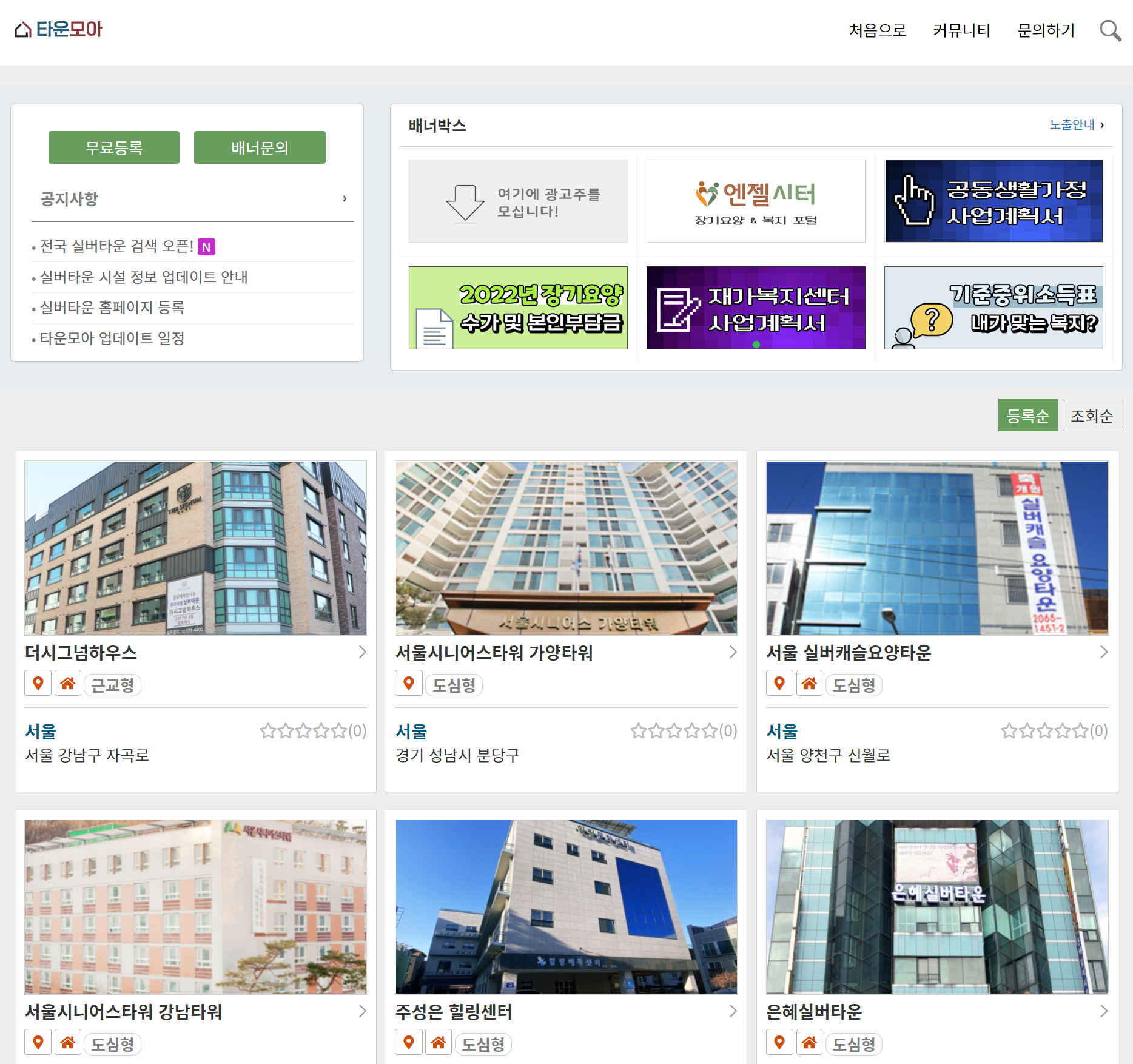 이번에 실버타운 전문 사이트 '타운모아'는 이름 그대로 전국의 실바타운 정보를 한 곳에 모았다.
