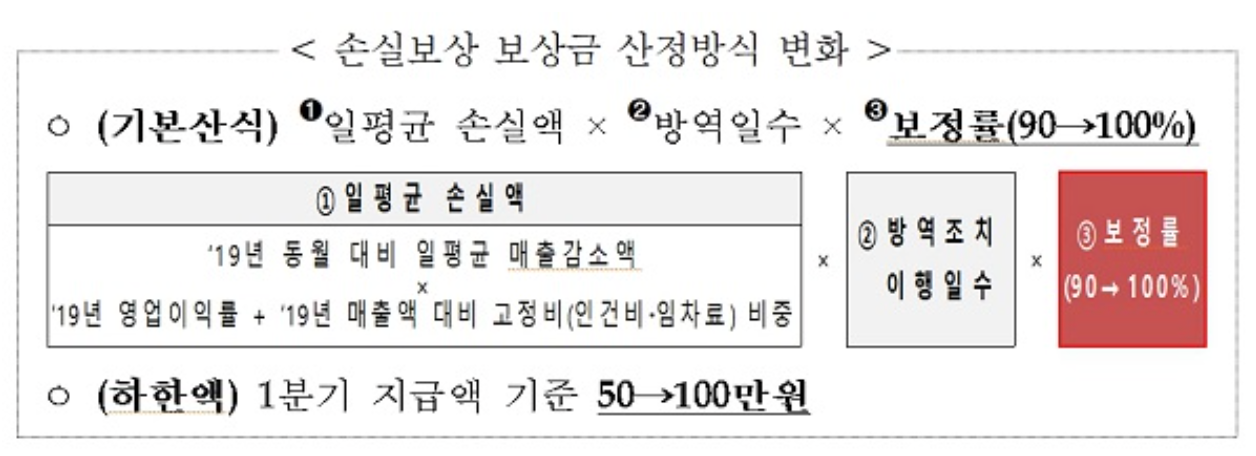 손실보상금에 대한 손실보상제도도 개선한다. 손실보상 보정률을 90%에서 100% 높인다. 분기별 보상 하한액도 50만원에서 100만원으로 대폭 올린다.